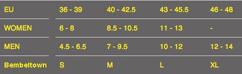 Zur besseren Orientierung und Information zu unserer Größenstaffelung bei den Bembelsocken hier nun endlich mal die passende Größentabelle.