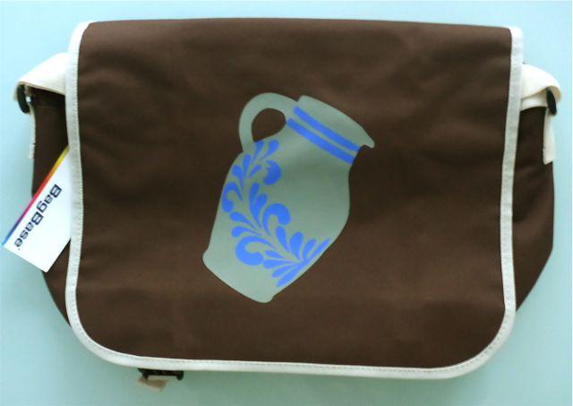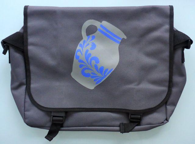 Immer gut gerüstet. Mit der Bembel Kuriertasche aus dem Hause Bembeltown Design Farbe bekennen zu Frankfurt und der Bembel Kultur.