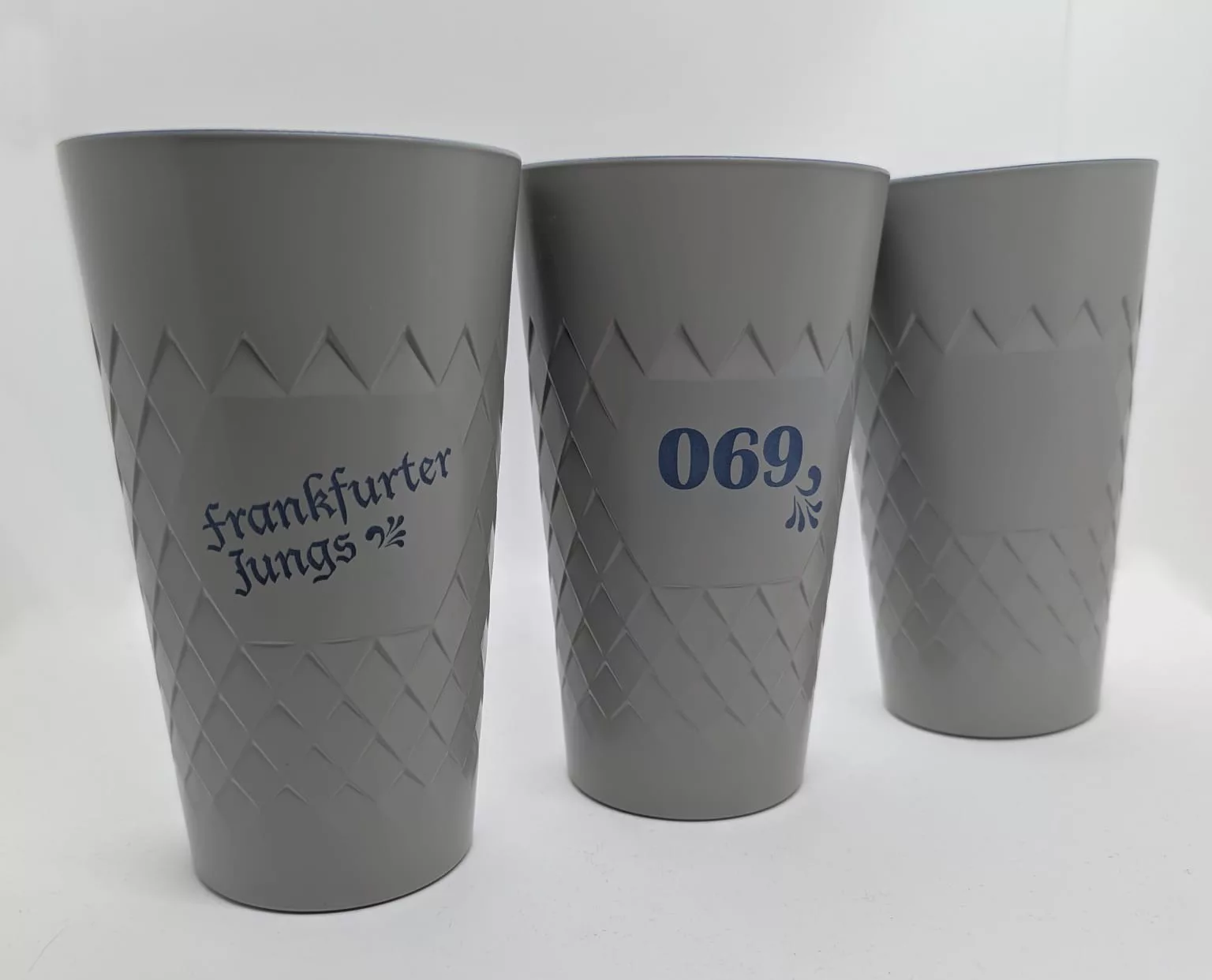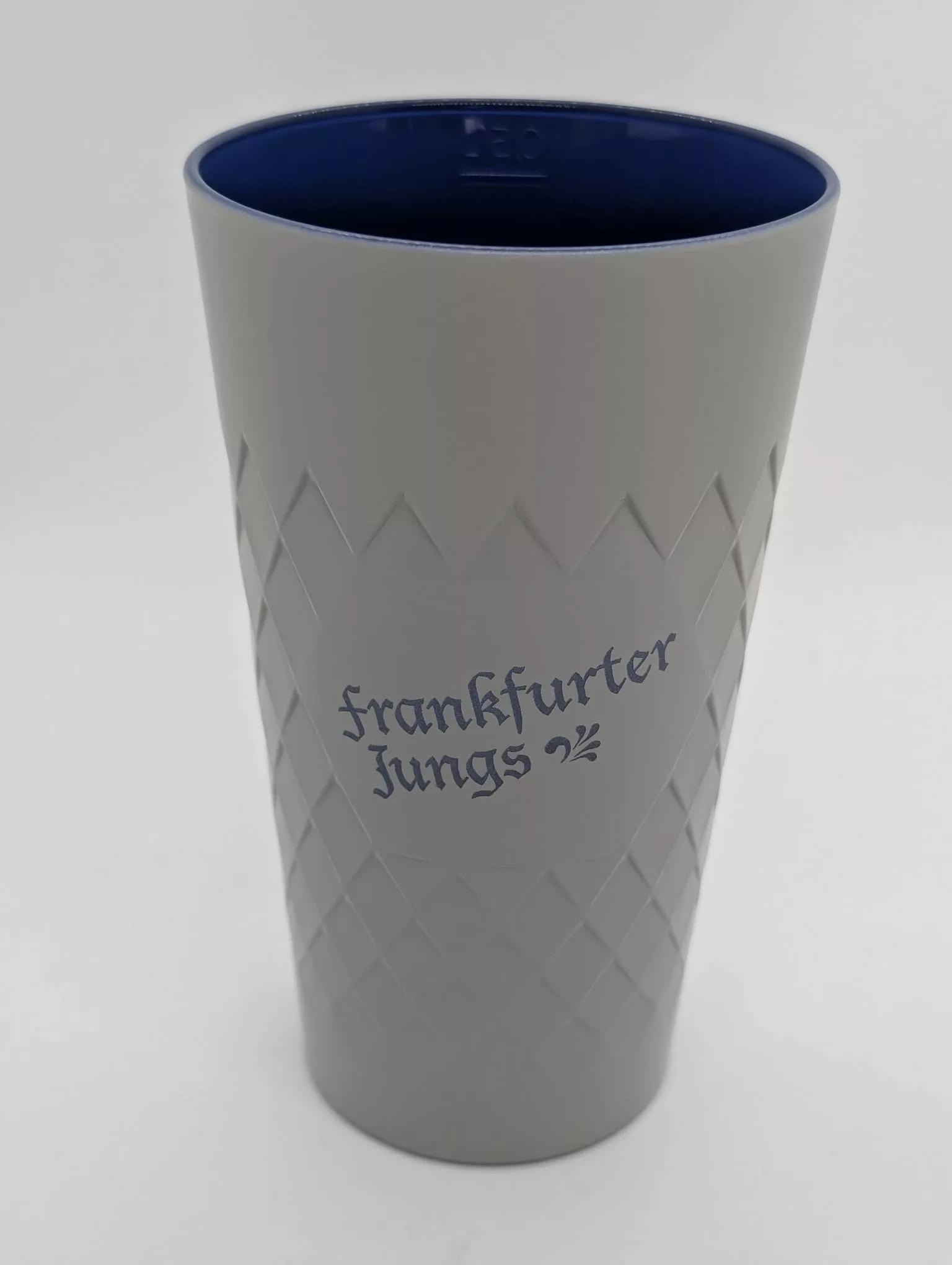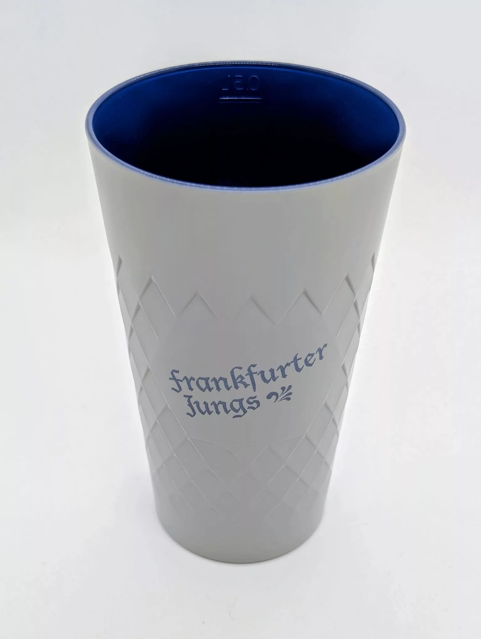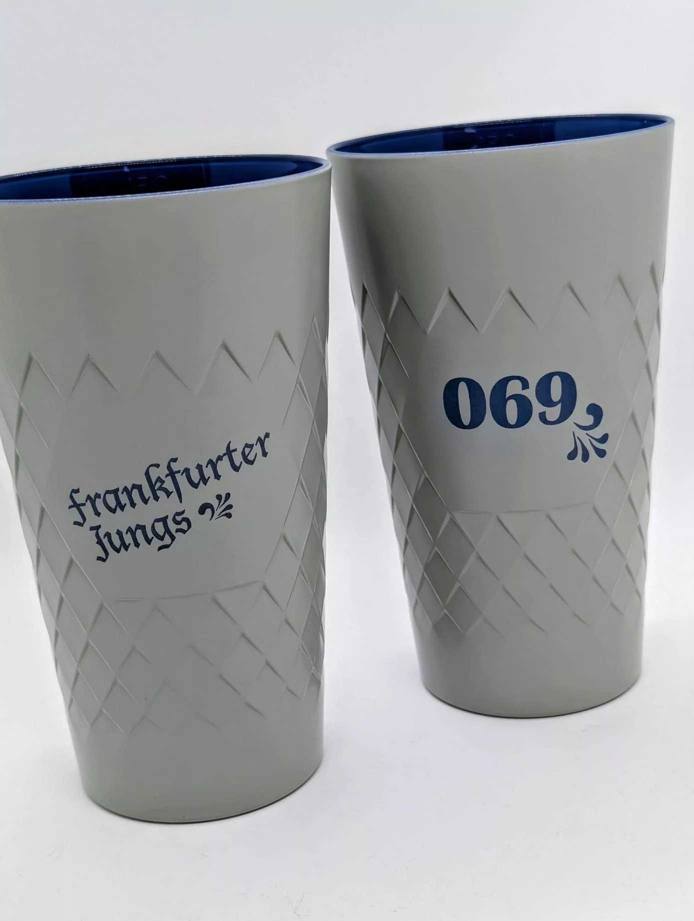 0,5L Gerippte in den klassischen Bembelfarben Grau außen und Blau innen in zwei coolen Designs.
