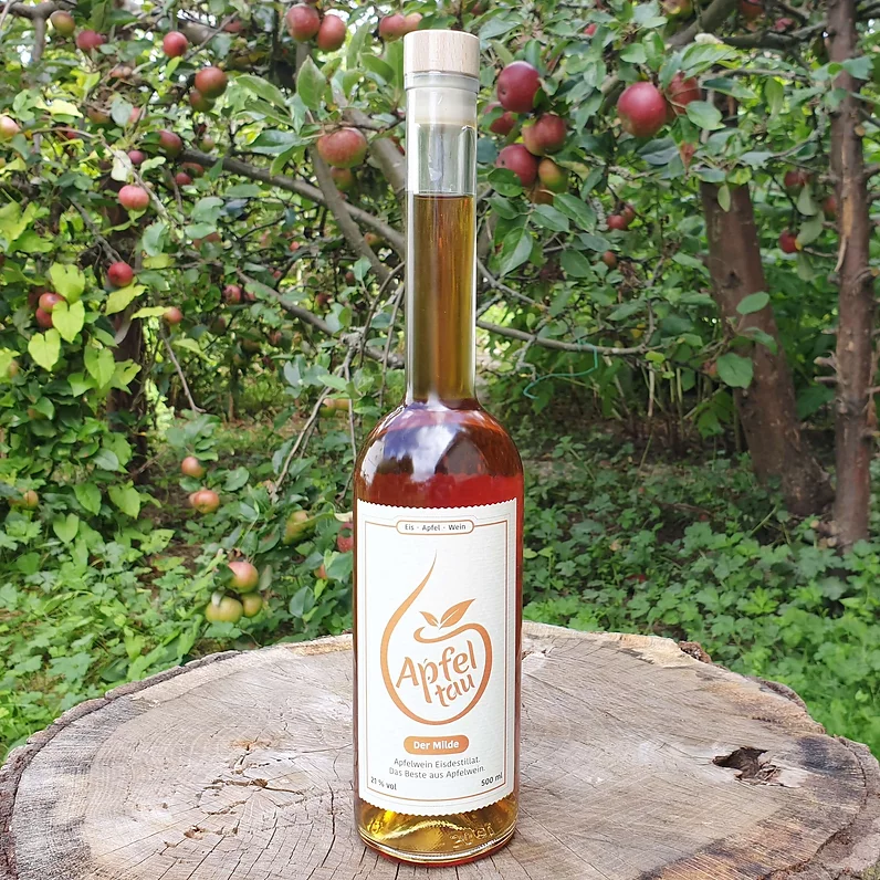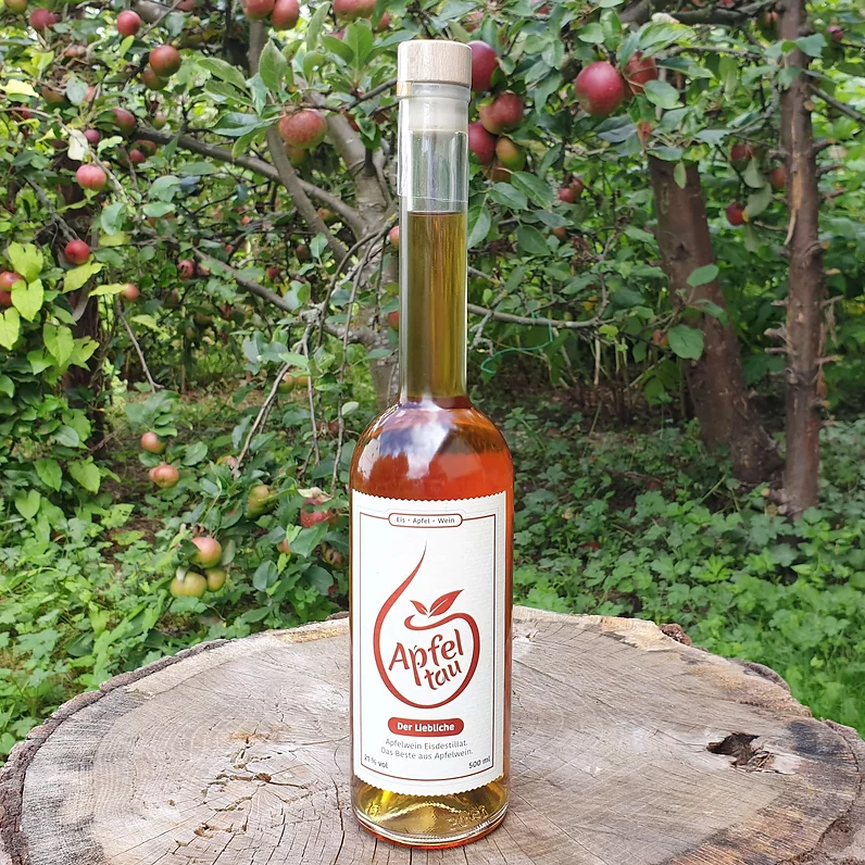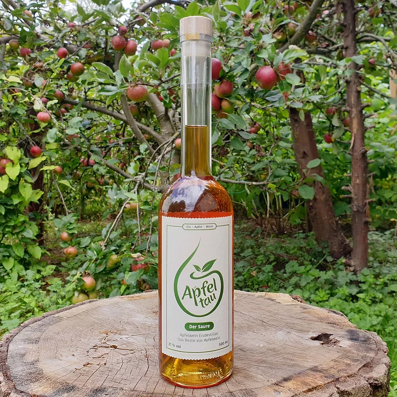 Die Essenz aus Apfelwein. Veredelt durch Eisdestillation. Apfeltau ist veredelter Apfelwein mit 21% vol. Durch Eisdestillation entnehmen wir Wasser und konzentrieren Geschmack, Aromen und Alkohol. Das Ergebnis ist eine neuartige Apfelwein-Spezialität mit einem vollmundig-intensivem Geschmackserlebnis.