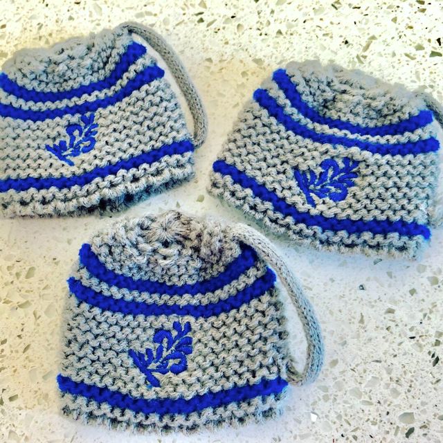 Bembel Eierwärmer „EI GUDE“ aus reiner Wolle gestrickt natürlich mit Henkelsche und mit unserem Bembelschwung bestickt.