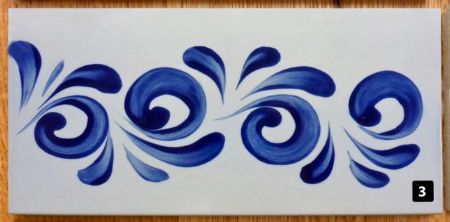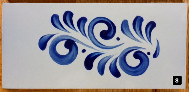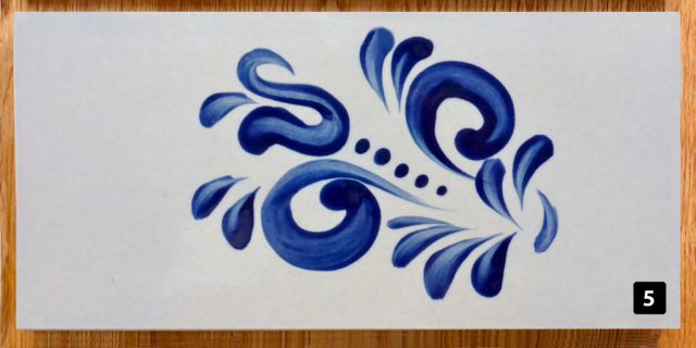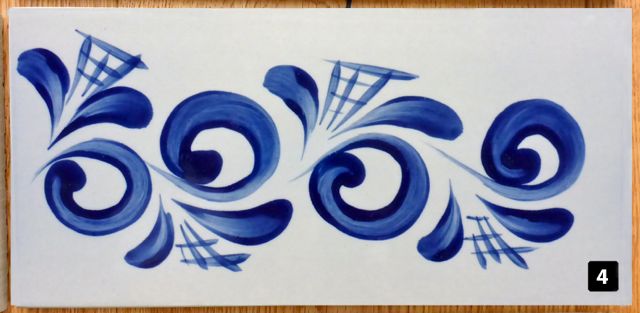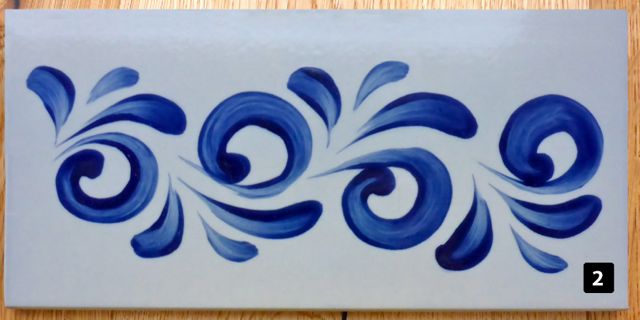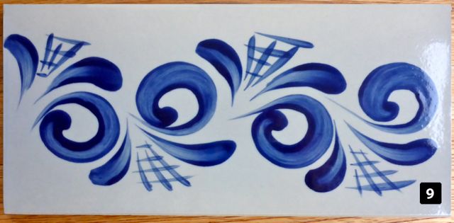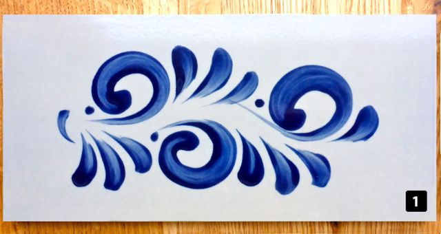 Die Wandfliese im Hessen Style kann als einzelnes Designelement eingesetzt werden oder mit einem fortlaufenden Muster mit Bembelschwung.