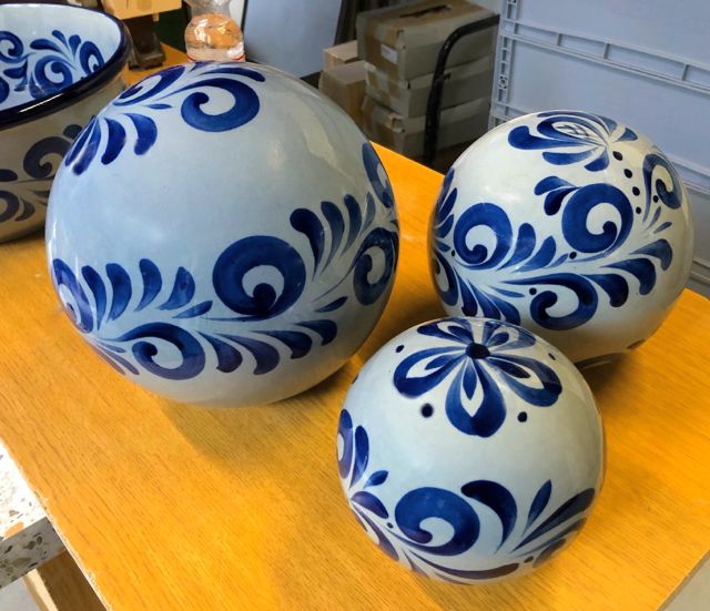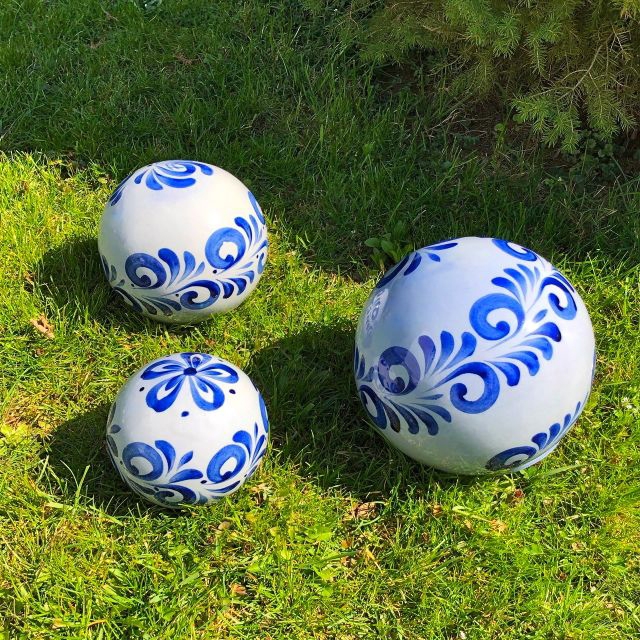 Wir produzieren unsere Bembelkugeln wetterbeständig aus Steinzeug in drei verschiedenen Größen.