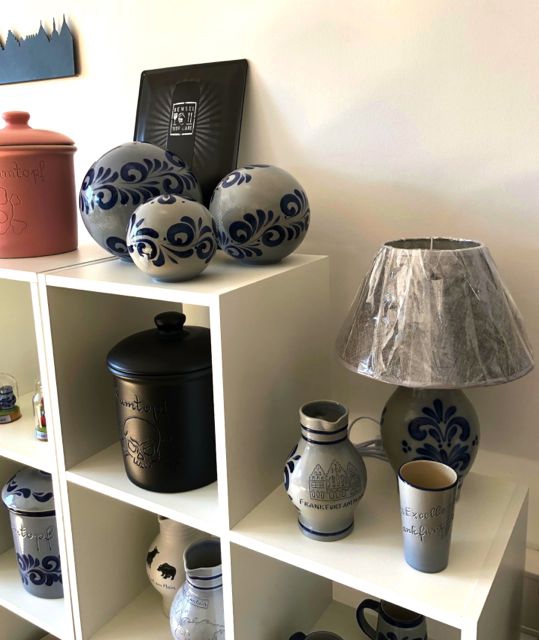 Selbstverständlich erhaltet Ihr alle unsere Frankfurt Souvenirs auch direkt in unserem Bembeltown Atelier in Frankfurt Industriehof.