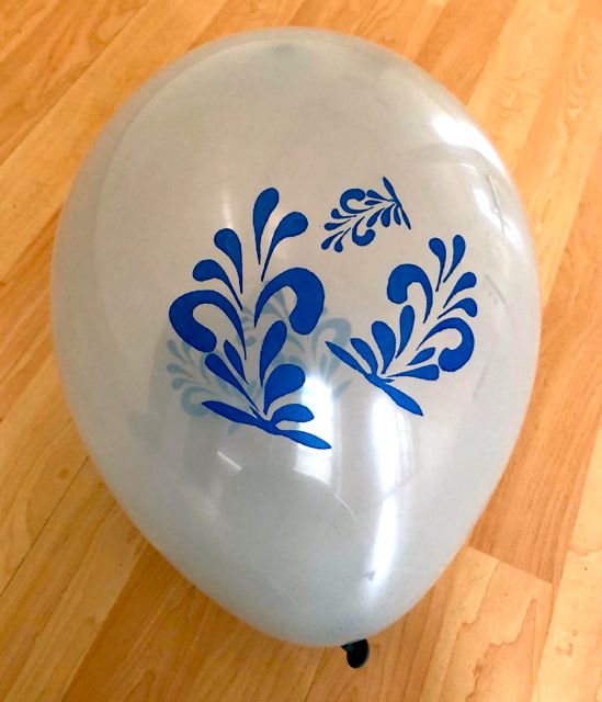 Graue Luftballons zum selbst uffblase. Uff beide Seide in blau mit Bembelschwünge bedruckt.