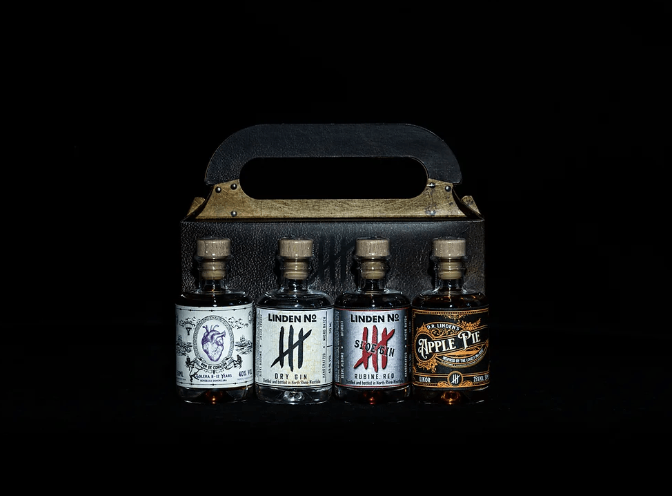 Die verschiedenen D.R. Linden Spirituosen als Probierset in 4 x 50 ml Flaschen.