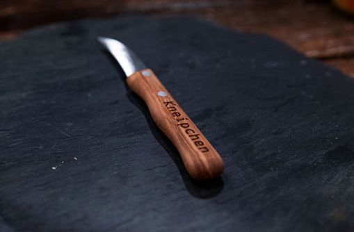 Wenn etwas in Hessen geschält oder geschnitten werden soll, dann muss ein Kneipchen her. Das Kneipchen – auch Tourniermesser – beschreibt im Hessischen ein vergleichweise kleines Küchenmesser mit meistens gebogener Klinge. Der Griff aus edlem Olivenbaumholz sorgt für einen sicheren und angenehmen Griff. Die Klinge besteht aus rostfreiem, handgeschliffenem Sohlinger Molybdänstahl.