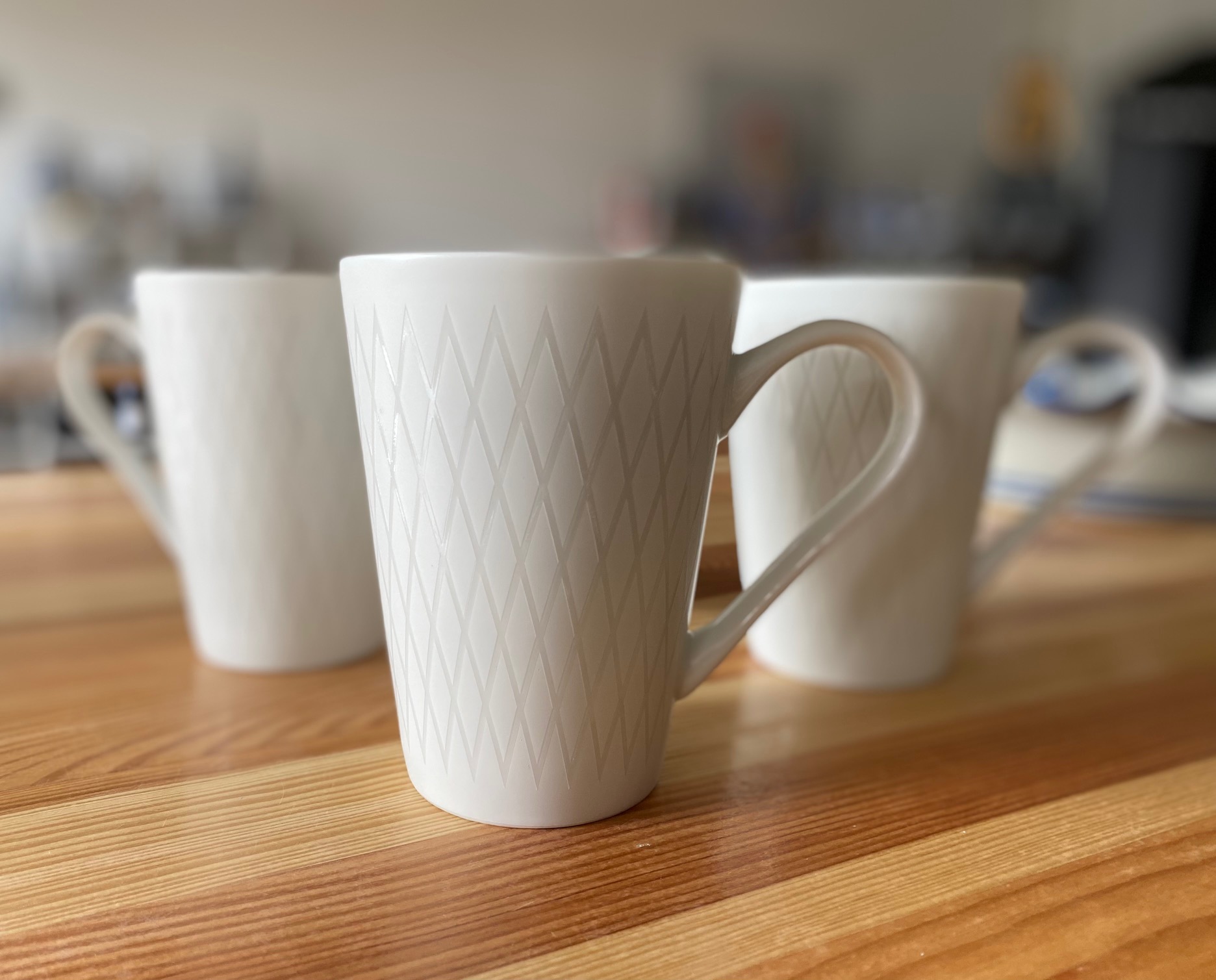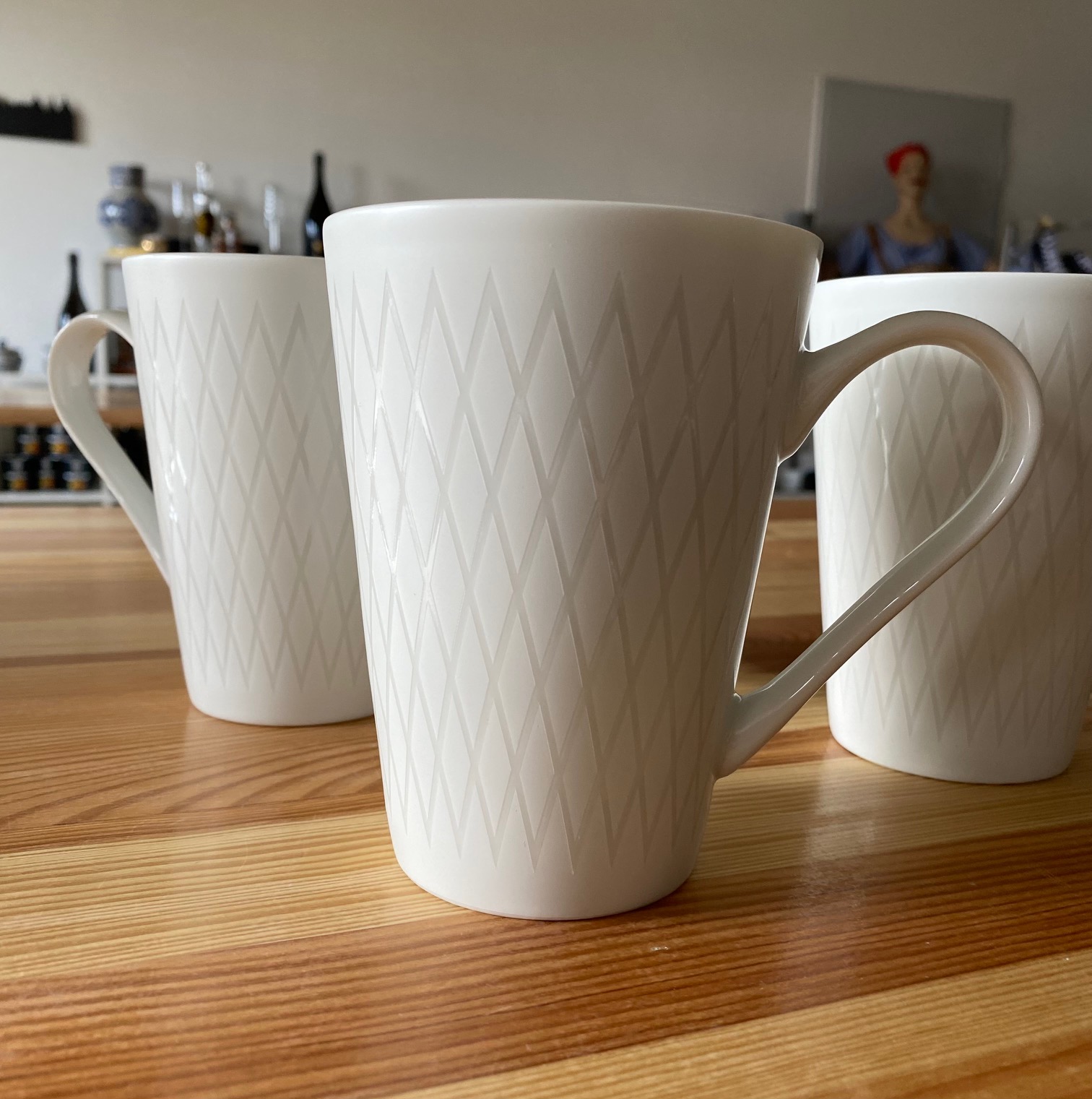 Auch in die feine Küche ganz in Weiß gibt es jetzt die passenden Kaffeetassen mit geripptem 3D-Reliefdruck.