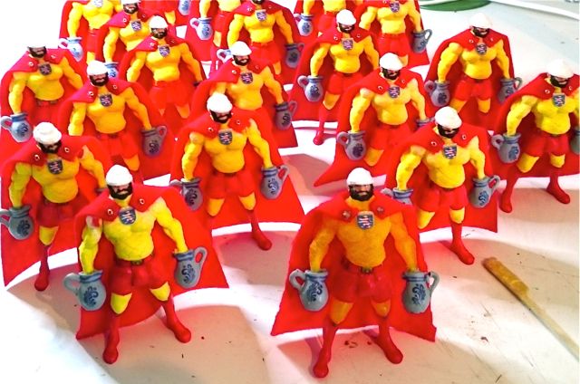 Unsere Serie hessischer Superhelden ist handgearbeitet und jedes Stück ein Unikat. Dies schließt auch die Verpackung mit ein und bedeutet z.B. das Klarsichtfenster ist über eine Vacuumpresse manuell  gezogen und liegt dadurch nicht immer passgenau an der Kartonverpackung an.