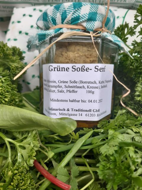 Hergestellt wird der Grüne Soße Senf in der Wetterau von Kulinarisch & Traditionell. – Mit viel Liebe und Leidenschaft werden hier immer wieder neue Produkte kreiert. Für alle Feinschmecker und Genießer nur ein Tipp… einfach immer mal wieder bei uns auf die Website oder Facebook-Seite schauen um keine neuen Produkte zu verpassen.