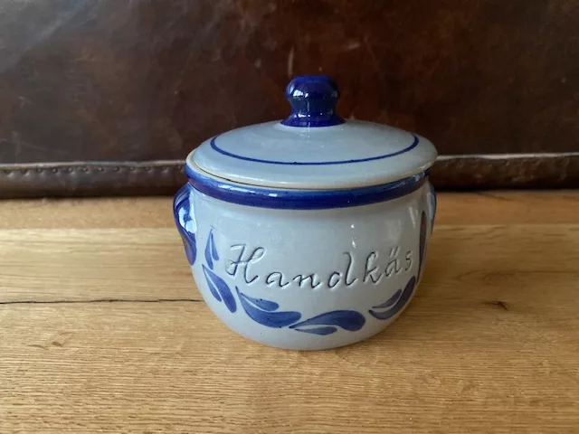 Mit dem original Frankfurter Handkäs Dippe aus Steinzeug bleibt der Handkäs immer kühl und dunkel gelagert, sodaß er gut und in Ruhe durchreifen kann.