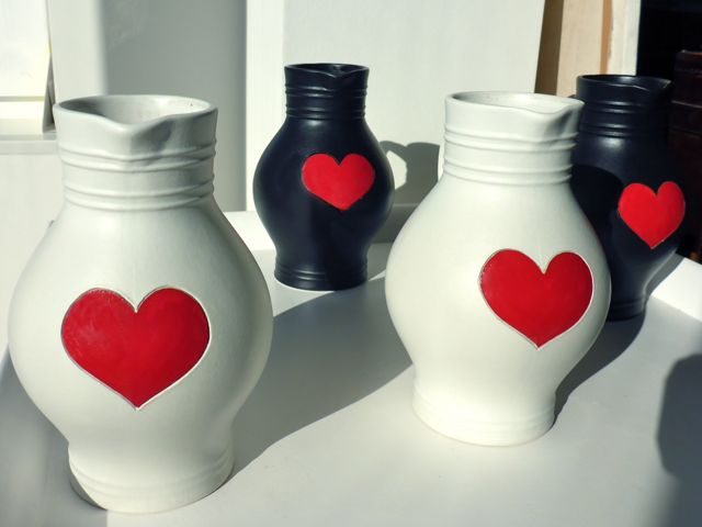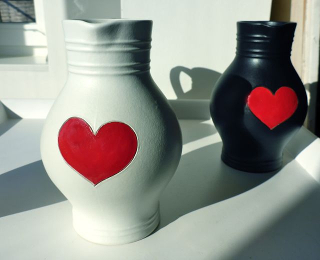 Herz Bembel in schwarz und weiß – Schicke 1 Liter Bembel mit rotem Herz.