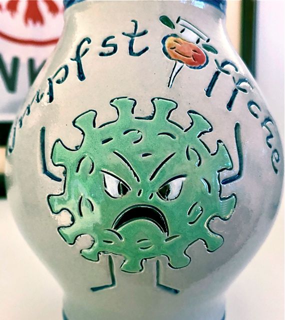 Das Warten hat ein Ende… Wir sind gerüstet für die harten Zeiten und haben ab sofort den original Impfstöffche Bembel.