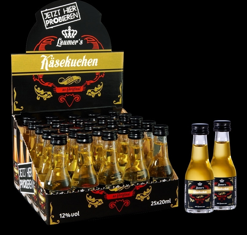 Der Käsekuchen aus der Flasche! Und das Ergebnis kann sich sehen lassen. Laumer’s Käsekuchen sieht genauso goldgelb aus wie ein gelungener Käsekuchen, riecht wie ein frisch gebackener Käsekuchen und der Geschmack ist der endgültige Beweis für den Erfolg unseres Produktes.
