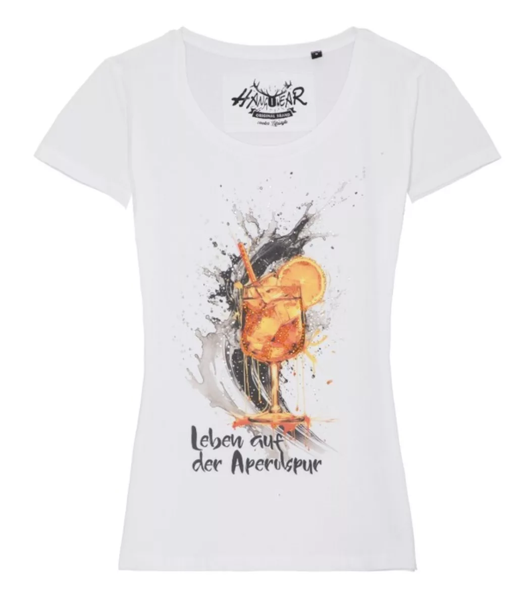 Lust auf ein Leben auf der Aperolspur? Damen Statement Shirt, Lady Cut aus Baumwolle und mit viel Bling Bling.