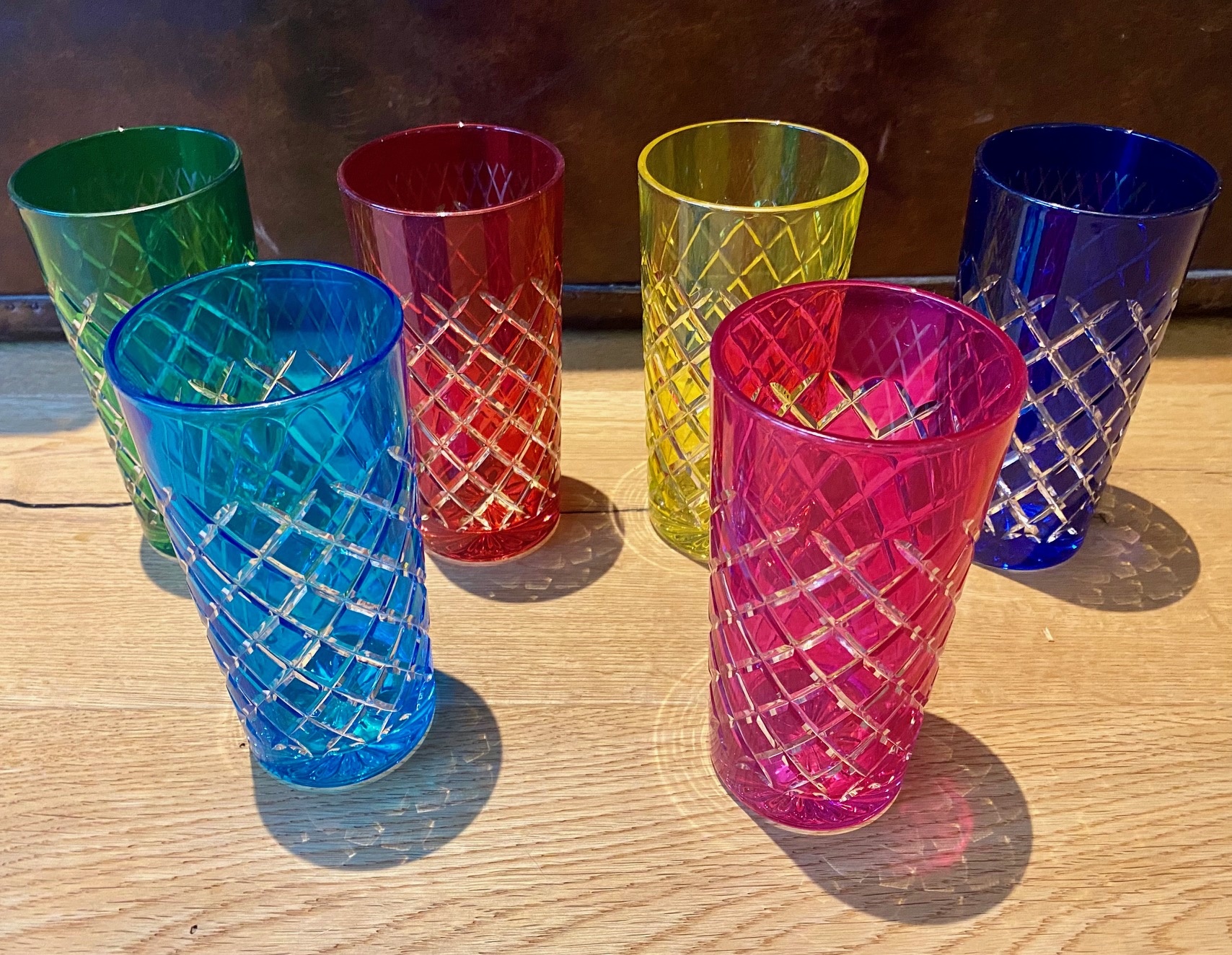 Hochwertige Gerippte aus Kristallglas in 10 verschiedenen Farben, von Hand veredelt.