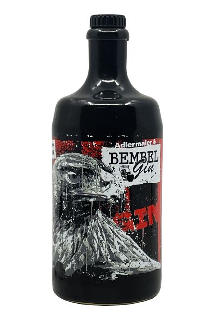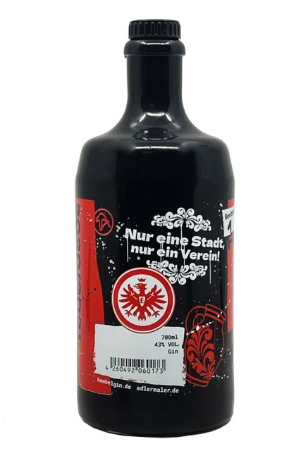 Mit stechenden, fokussierten Augen hat Atilla nicht nur die nächsten drei Punkte, sondern auch den nächsten Gin & Tonic im Blick. Bembel Gin präsentiert in Zusammenarbeit mit „Adlermaler“ Sven Gabriel die erste Sonderedition des Eintracht-Frankfurt-Gins. Im aufwendigen 5-Farb-Tampondruck ziert das Wappentier der Frankfurter Eintracht die glänzend schwarze Steingutflasche, die in keinem Ginregal eines Eintracht-Fans fehlen sollte.